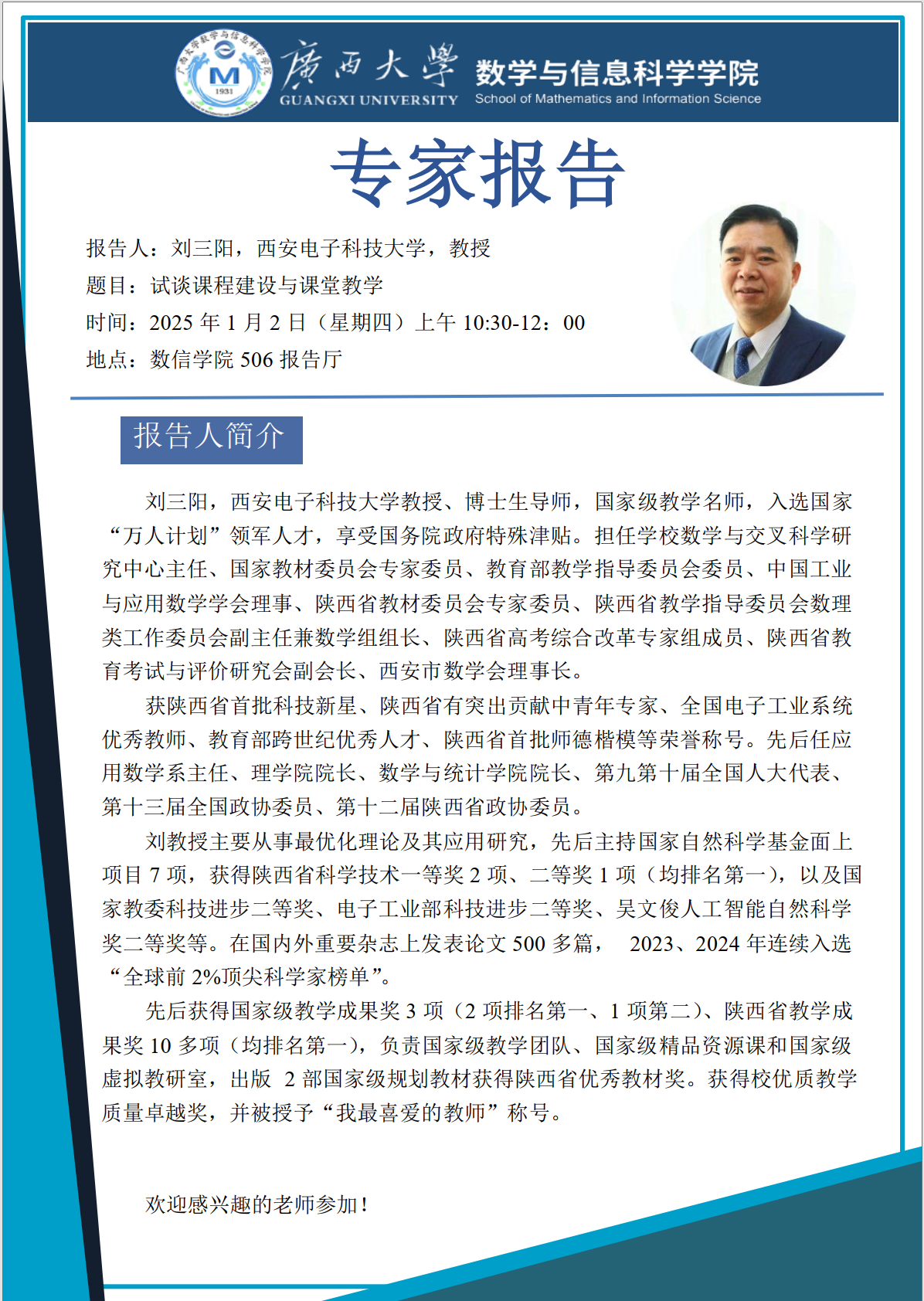 学术报告:试谈课程建设与课堂教学
