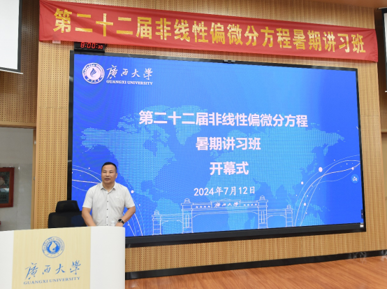 2024年7月12日,在国家自然科学基金数学天元基金委员会和协办单位的大力支持下,由我校承办的第二十二届非线性偏微分方程暑期讲习班(初级班)开幕式在太阳集团www0638第十教学楼A座305隆重举行。