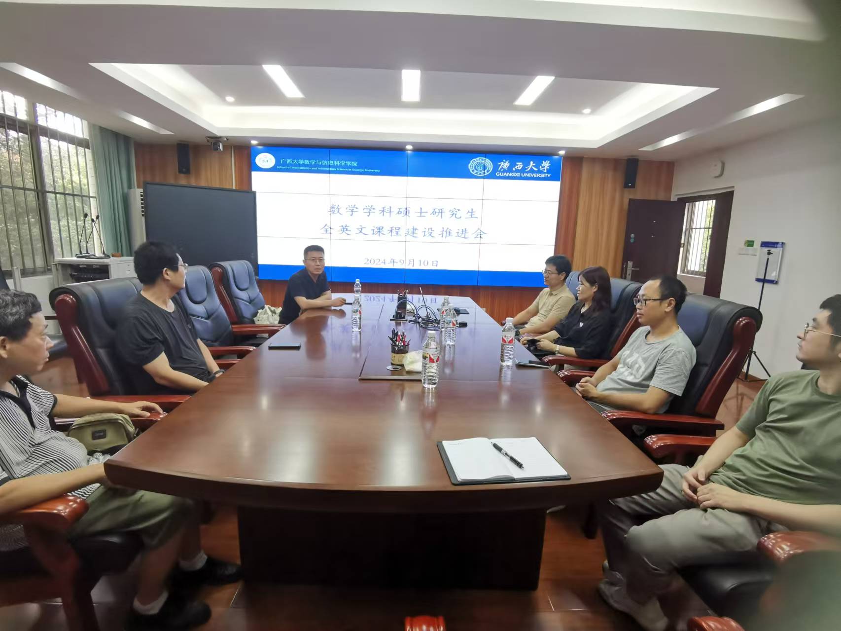 为加速提升数学学科研究生教育的国际化水平,推进全英文教学环境的构建,太阳官网于9月10日下午在213会议室召开了数学学科硕士研究生全英文课程建设专项推进会议,会议由袁功林副院长主持,相关课程负责人参会。