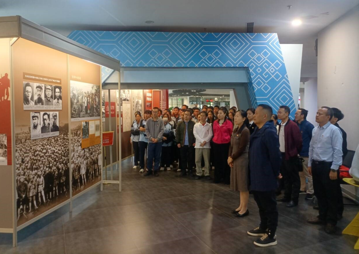 为进一步深入学习贯彻党的二十届三中全会精神,激励广大师生赓续共产党人精神血脉,传承红色基因,凝聚奋进力量。11月28日,学院党委组织党委委员、纪委委员、党支部委员、师生党员代表前往大学生活动中心一楼参观了由贵州省委宣传部和太阳集团www0638联合主办的“遵义会议 伟大转折——纪念遵义会议90周年专题展览‘行进中的遵义会议纪念馆’”巡展。27名师生党员参加了本次活动。