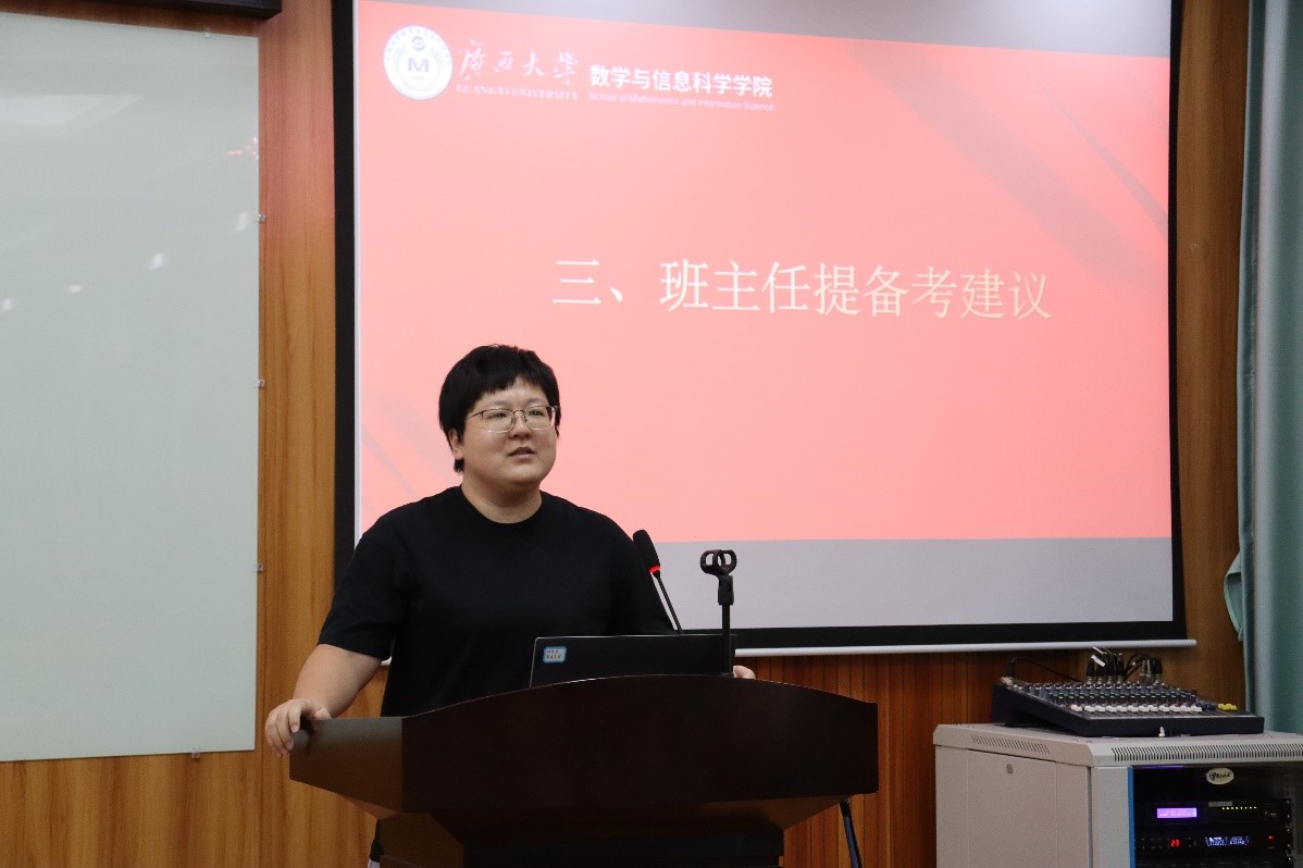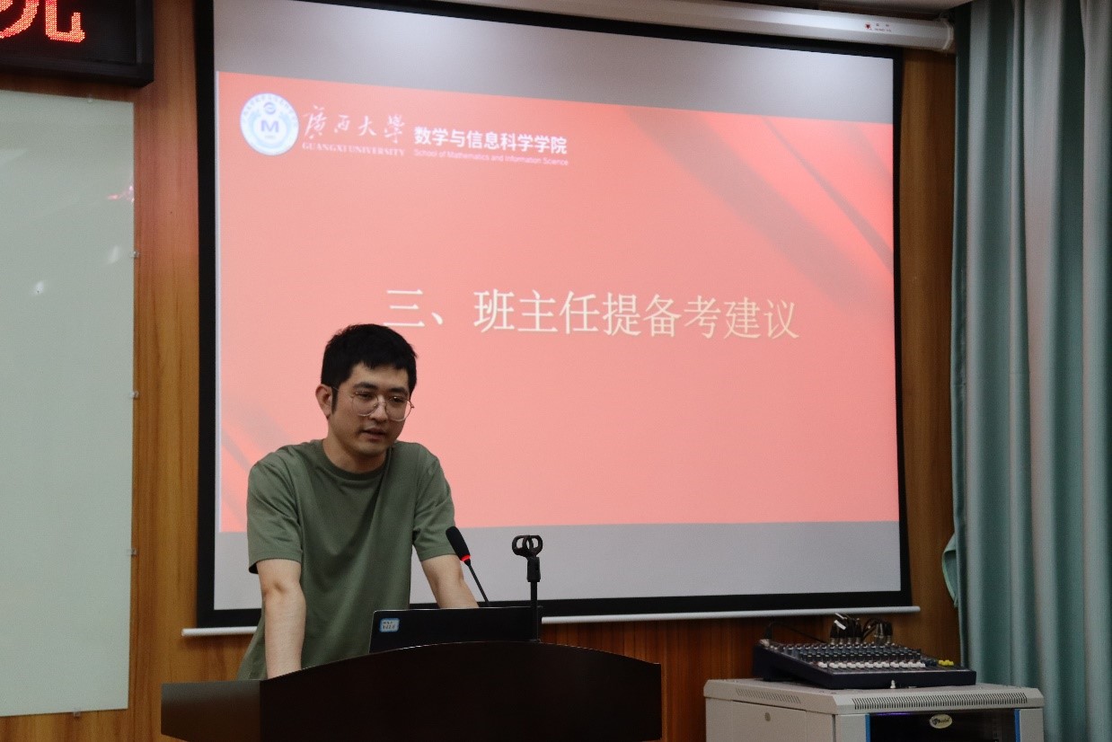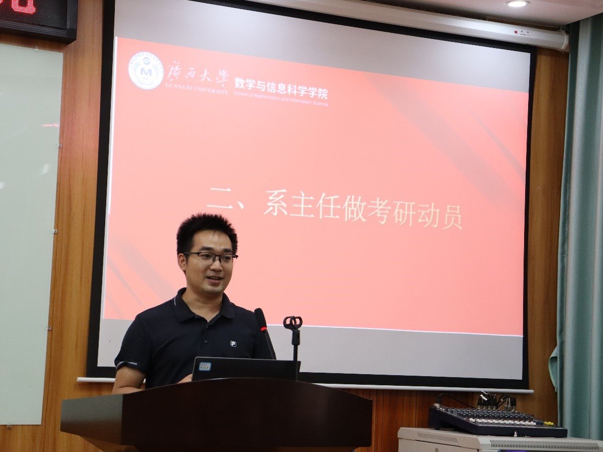 陈良对考研政策进行了详细解读,帮助同学们更好地了解考研的相关要求和流程。他还结合当前考研形势,分析了考研的难点和重点,就如何选择院校和专业提出了建议。何家维从研究方向结合职业生涯发展前景做了分析,总结了历年学生考研的录取情况,强调了继续读研提升的重要性,鼓励同学们明确读研目标,制订可行的复习计划,注重基础知识积累,提升解题能力,提高考研成功率。张幸说明了信息与计算科学专业应用性比较强的特点与优势,并就该专业在研究生阶段可拓展延伸的方向做了详细介绍,激发了同学们的学习兴趣与报考信心。刘楚箫强调复习阶段应注重巩固基础,提高对知识点更高层次的把握和运用,要善于归纳总结,形成自己熟悉的解题体系,从而在实考中面对陌生的试题时能把握主动,避免走入为做题而做题的误区。