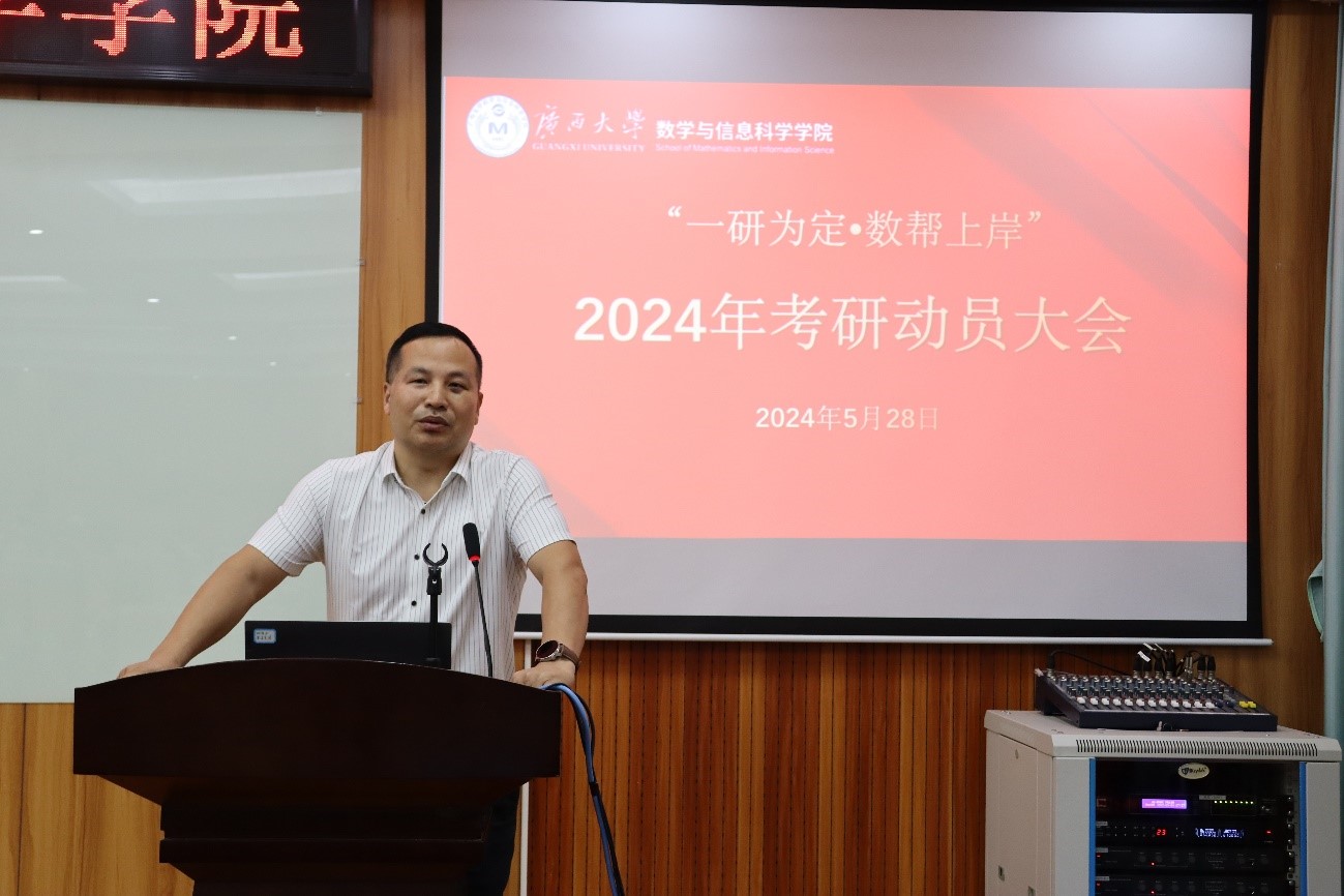 5月28日,太阳集团www06382024年考研动员大会在学院109报告厅举行,此次大会旨在帮助即将踏上考研征程的学子们明确目标、提振信心,并为他们提供宝贵的备考经验和指导建议。学院院长郭真华、各系主任、各毕业班班主任、全体辅导员、2023届毕业班学生代表以及2021级全体学生参加了大会。会议由学院党委副书记唐旭彬主持。