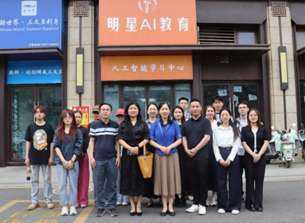 座谈会结束后,吴华丽一行参观了公司位于南宁市五象平良校区的明星AI教育-人工智能学习中心。学院党委副书记、纪委书记唐旭彬,教工党支部书记、班主任代表何其涵以及2025届毕业生代表参加了本次交流活动。